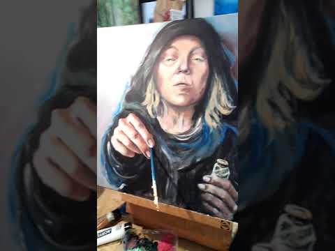 Peinture acrylique représentant une personne peignant les choses en doré.